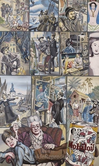 Wir bieten Ihnen eine handgefertigte Reproduktion auf Leinwand des berühmten Kunstwerks 'Leben Gauguin' von Erro, aus dem Reproduktionsmuseum.
