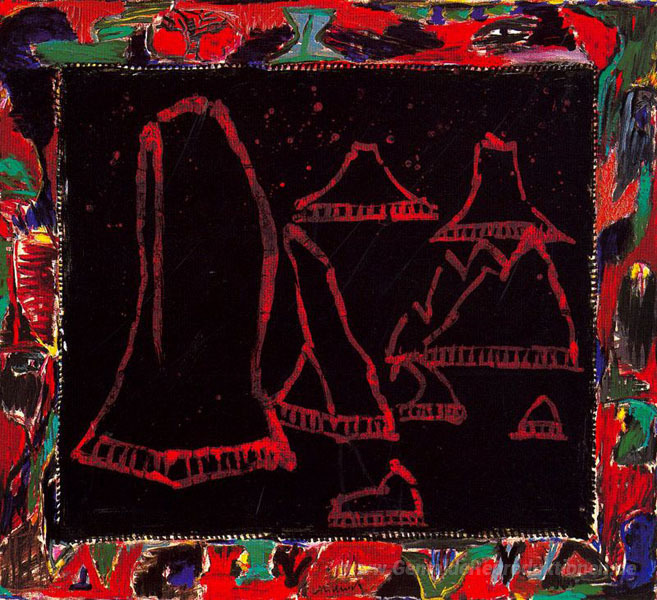 Wir bieten Ihnen eine handgefertigte Reproduktion auf Leinwand des berühmten Kunstwerks 'Les Aiguilles, VIII' von Pierre Alechinsky, aus dem Reproduktionsmuseum.