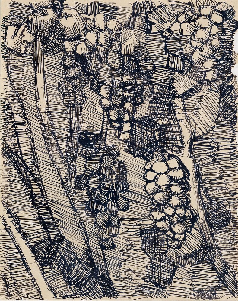 Wir bieten Ihnen eine handgefertigte Reproduktion auf Leinwand des berühmten Kunstwerks 'Les Rosinen' von Louis Soutter, aus dem Reproduktionsmuseum.