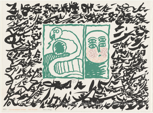 Wir bieten Ihnen eine handgefertigte Reproduktion auf Leinwand des berühmten Kunstwerks 'Linolog II' von Pierre Alechinsky, aus dem Reproduktionsmuseum.