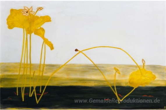 Wir bieten Ihnen eine handgefertigte Reproduktion auf Leinwand des berühmten Kunstwerks 'Lotus und Red Fish' von Sanyu, aus dem Reproduktionsmuseum.