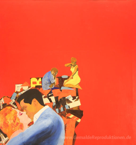 Wir bieten Ihnen eine handgefertigte Reproduktion auf Leinwand des berühmten Kunstwerks 'Lovers (auch bekannt als Am I Faris)' von Rosalyn Drexler, aus dem Reproduktionsmuseum.