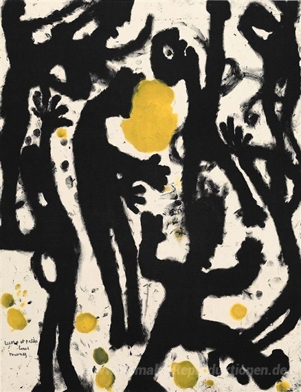 Wir bieten Ihnen eine handgefertigte Reproduktion auf Leinwand des berühmten Kunstwerks 'Lunes et petites Lunes Tournez' von Louis Soutter, aus dem Reproduktionsmuseum.