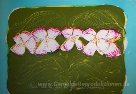 Wir bieten Ihnen eine handgefertigte Reproduktion auf Leinwand des berühmten Kunstwerks 'Mai cousu par les fleurs de Pommiers' von Jean Messagier, aus dem Reproduktionsmuseum.