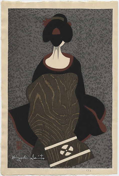 Wir bieten Ihnen eine handgefertigte Reproduktion auf Leinwand des berühmten Kunstwerks 'Maiko III' von Kiyoshi Saito, aus dem Reproduktionsmuseum.