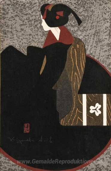 Wir bieten Ihnen eine handgefertigte Reproduktion auf Leinwand des berühmten Kunstwerks 'Maiko' von Kiyoshi Saito, aus dem Reproduktionsmuseum.