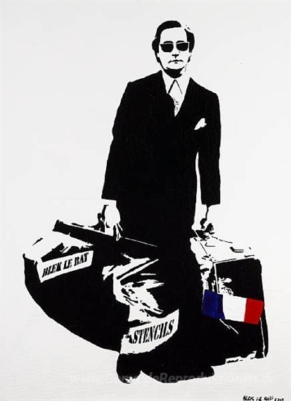 Wir bieten Ihnen eine handgefertigte Reproduktion auf Leinwand des berühmten Kunstwerks 'Mann, der durch Wände geht' von Blek le Rat, aus dem Reproduktionsmuseum.