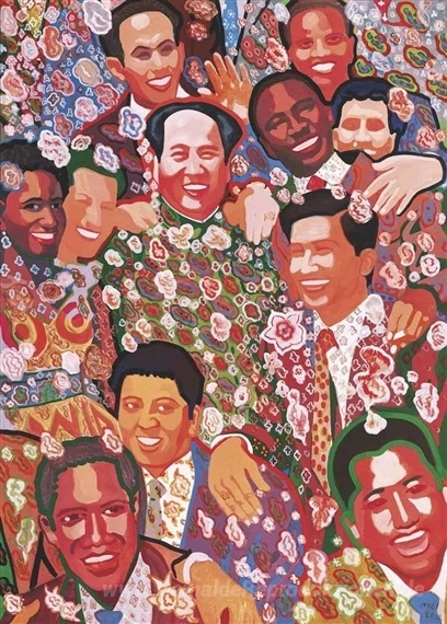 Wir bieten Ihnen eine handgefertigte Reproduktion auf Leinwand des berühmten Kunstwerks 'Mao und seine Freunde aus der Dritten Welt' von Yu Youhan, aus dem Reproduktionsmuseum.