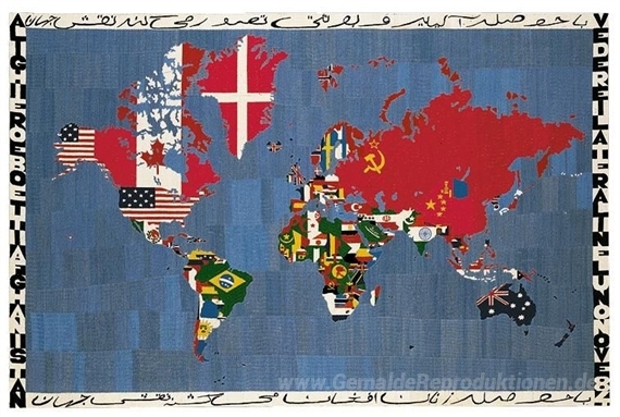 Wir bieten Ihnen eine handgefertigte Reproduktion auf Leinwand des berühmten Kunstwerks 'Mappa' von Alighiero Boetti, aus dem Reproduktionsmuseum.