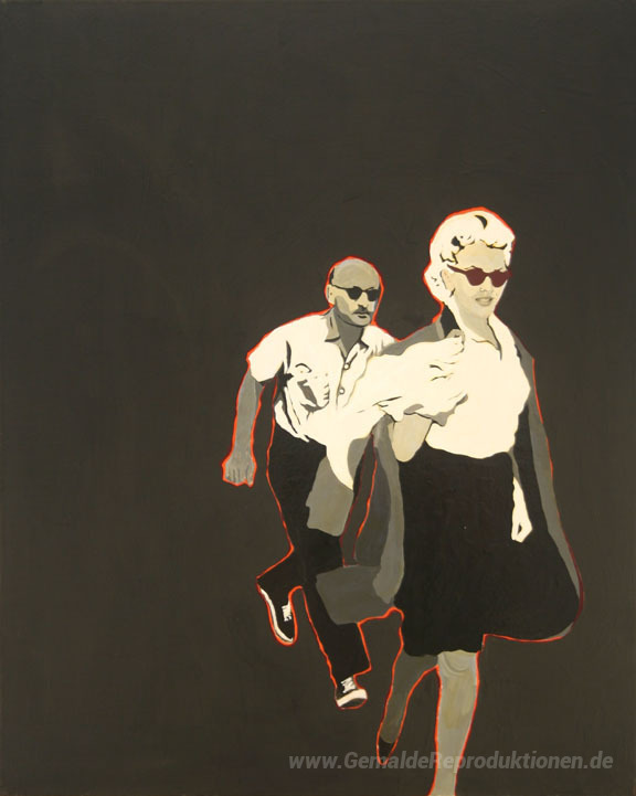 Wir bieten Ihnen eine handgefertigte Reproduktion auf Leinwand des berühmten Kunstwerks 'Marilyn By Death Verfolgt' von Rosalyn Drexler, aus dem Reproduktionsmuseum.