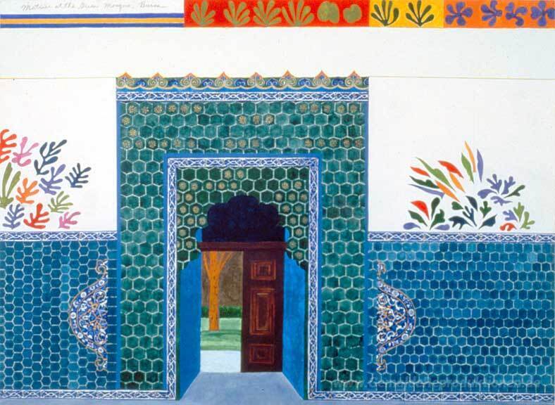 Wir bieten Ihnen eine handgefertigte Reproduktion auf Leinwand des berühmten Kunstwerks 'Matisse auf der Grünen Moschee in Bursa' von Joyce Kozloff, aus dem Reproduktionsmuseum.