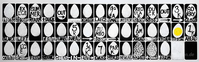 Wir bieten Ihnen eine handgefertigte Reproduktion auf Leinwand des berühmten Kunstwerks 'Mayfair: Sommerbauernhof, fünfundvierzig Anzeichen für Micky Mon' von Robert MacPherson, aus dem Reproduktionsmuseum.