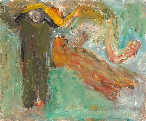 Wir bieten Ihnen eine handgefertigte Reproduktion auf Leinwand des berühmten Kunstwerks 'Me and Me' von Milton Resnick, aus dem Reproduktionsmuseum.