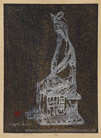Wir bieten Ihnen eine handgefertigte Reproduktion auf Leinwand des berühmten Kunstwerks 'Miroku' von Kiyoshi Saito, aus dem Reproduktionsmuseum.