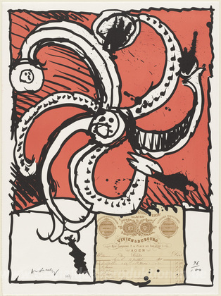 Wir bieten Ihnen eine handgefertigte Reproduktion auf Leinwand des berühmten Kunstwerks 'Mme de Parades' von Pierre Alechinsky, aus dem Reproduktionsmuseum.