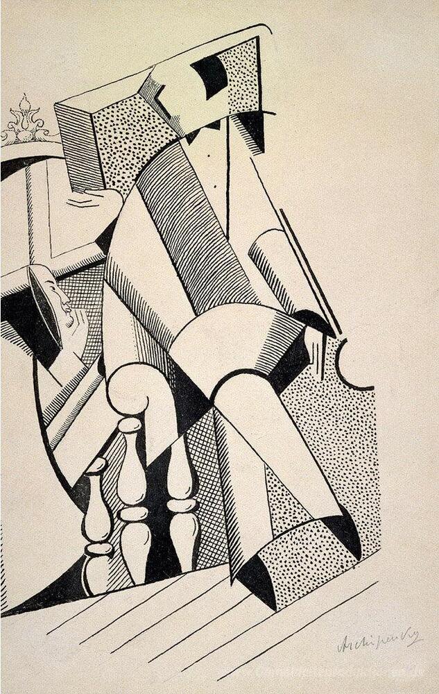 Wir bieten Ihnen eine handgefertigte Reproduktion auf Leinwand des berühmten Kunstwerks 'Movers-Verso (ohne Titel)' von Olexandr Archipenko, aus dem Reproduktionsmuseum.