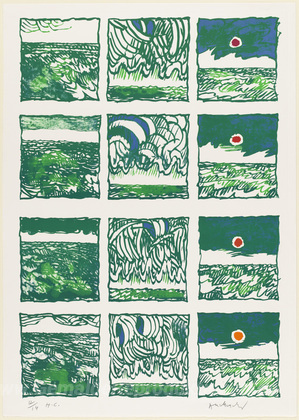 Wir bieten Ihnen eine handgefertigte Reproduktion auf Leinwand des berühmten Kunstwerks 'Nachtwache (Trois-Quart de veille)' von Pierre Alechinsky, aus dem Reproduktionsmuseum.