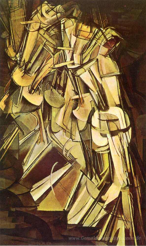 Wir bieten Ihnen eine handgefertigte Reproduktion auf Leinwand des berühmten Kunstwerks 'Nude eine Treppe herabsteigend, No.2' von Marcel Duchamp, aus dem Reproduktionsmuseum.