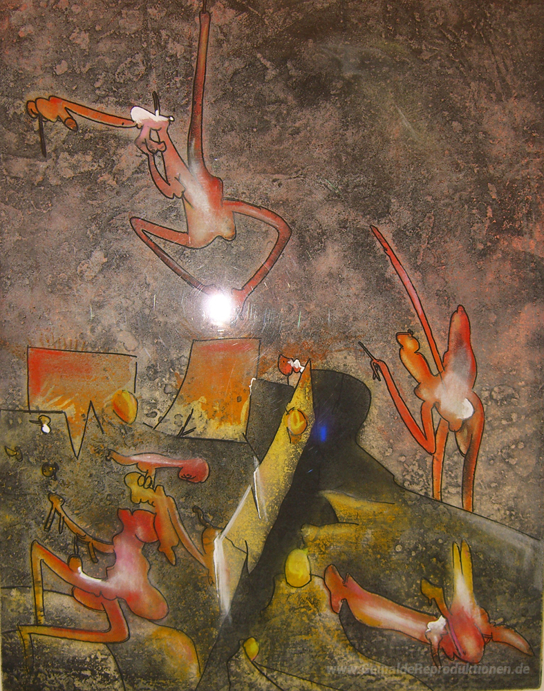 Wir bieten Ihnen eine handgefertigte Reproduktion auf Leinwand des berühmten Kunstwerks 'Ohne Titel' von Roberto Matta, aus dem Reproduktionsmuseum.