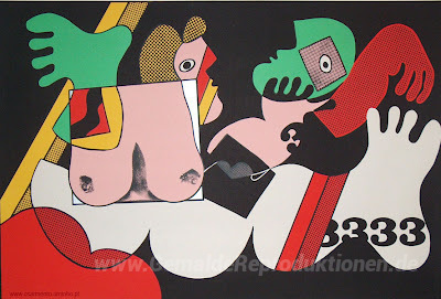 Wir bieten Ihnen eine handgefertigte Reproduktion auf Leinwand des berühmten Kunstwerks 'Ohne Titel' von Jose de Guimaraes, aus dem Reproduktionsmuseum.