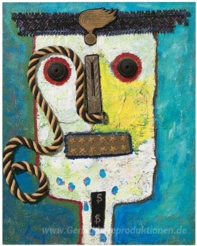 Wir bieten Ihnen eine handgefertigte Reproduktion auf Leinwand des berühmten Kunstwerks 'Omo' von Enrico Baj, aus dem Reproduktionsmuseum.