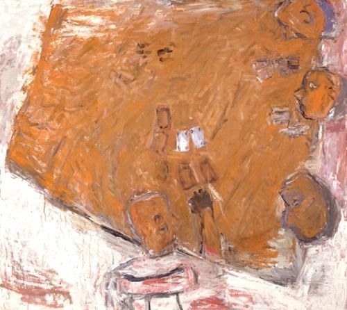 Wir bieten Ihnen eine handgefertigte Reproduktion auf Leinwand des berühmten Kunstwerks 'Orange Poker' von Susan Rothenberg, aus dem Reproduktionsmuseum.