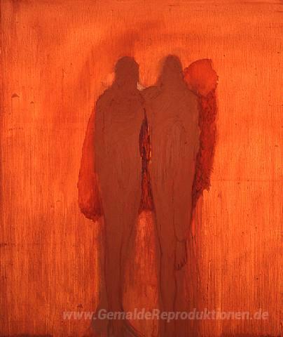 Wir bieten Ihnen eine handgefertigte Reproduktion auf Leinwand des berühmten Kunstwerks 'Paare mit roter' von Nathan Oliveira, aus dem Reproduktionsmuseum.
