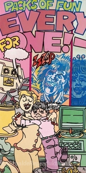 Wir bieten Ihnen eine handgefertigte Reproduktion auf Leinwand des berühmten Kunstwerks 'Pack of Fun' von Erro, aus dem Reproduktionsmuseum.