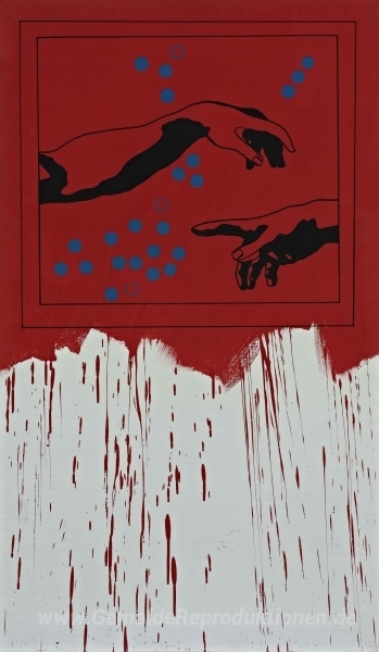 Wir bieten Ihnen eine handgefertigte Reproduktion auf Leinwand des berühmten Kunstwerks 'Particolare della Cappella Sistina' von Tano Festa, aus dem Reproduktionsmuseum.