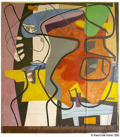 Wir bieten Ihnen eine handgefertigte Reproduktion auf Leinwand des berühmten Kunstwerks 'Peinture murale, 35 rue de Sèvres à Paris' von Le Corbusier, aus dem Reproduktionsmuseum.