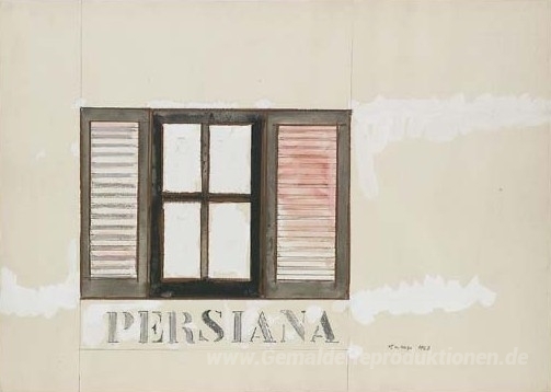 Wir bieten Ihnen eine handgefertigte Reproduktion auf Leinwand des berühmten Kunstwerks 'Persiana' von Tano Festa, aus dem Reproduktionsmuseum.