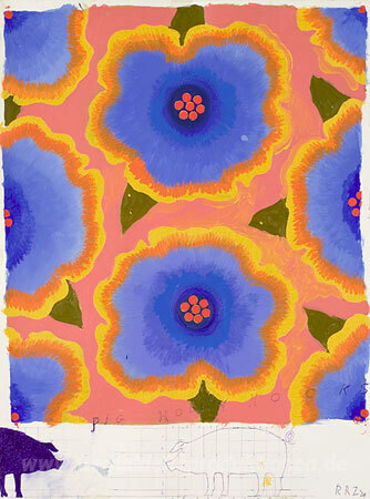 Wir bieten Ihnen eine handgefertigte Reproduktion auf Leinwand des berühmten Kunstwerks 'Pig Stockrosen' von Robert Zakanitch, aus dem Reproduktionsmuseum.