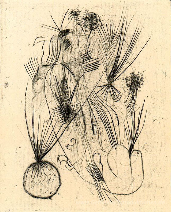 Wir bieten Ihnen eine handgefertigte Reproduktion auf Leinwand des berühmten Kunstwerks 'Planta tuberosa' von Wols, aus dem Reproduktionsmuseum.
