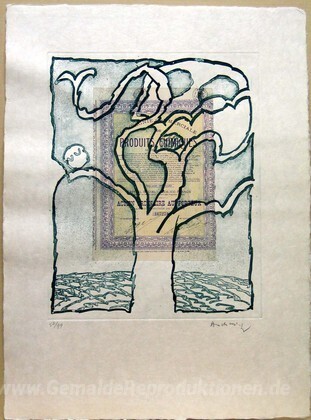 Wir bieten Ihnen eine handgefertigte Reproduktion auf Leinwand des berühmten Kunstwerks 'Platte V aus dem Portfolio Krach' von Pierre Alechinsky, aus dem Reproduktionsmuseum.