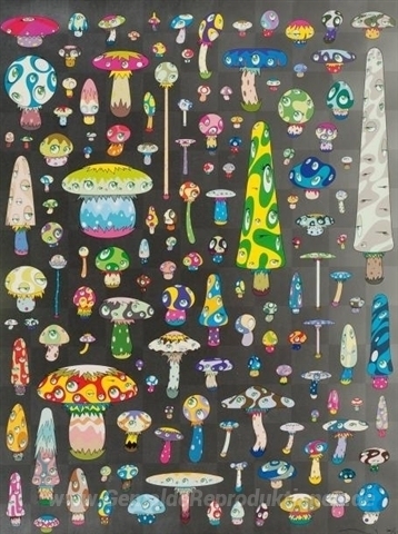 Wir bieten Ihnen eine handgefertigte Reproduktion auf Leinwand des berühmten Kunstwerks 'Posi Mushroom' von Takashi Murakami, aus dem Reproduktionsmuseum.