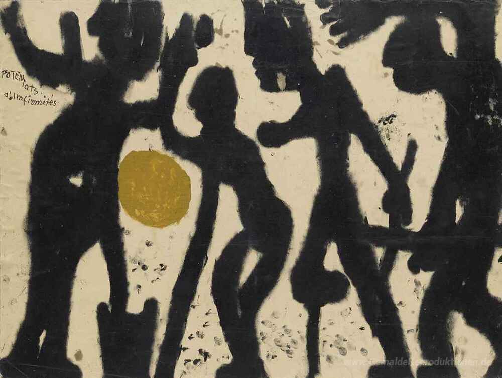 Wir bieten Ihnen eine handgefertigte Reproduktion auf Leinwand des berühmten Kunstwerks 'Potentats d 'Imfirmités' von Louis Soutter, aus dem Reproduktionsmuseum.