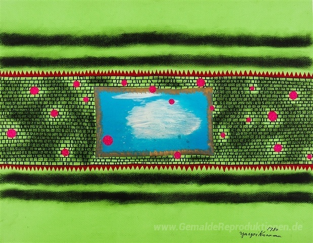Wir bieten Ihnen eine handgefertigte Reproduktion auf Leinwand des berühmten Kunstwerks 'Reisen Wasser' von Yayoi Kusama, aus dem Reproduktionsmuseum.