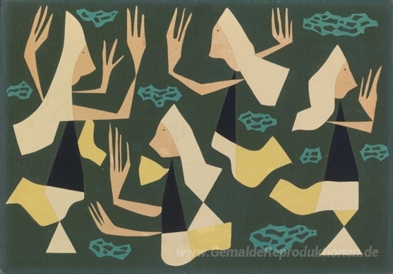 Wir bieten Ihnen eine handgefertigte Reproduktion auf Leinwand des berühmten Kunstwerks 'Retablo' von Carlos Merida, aus dem Reproduktionsmuseum.