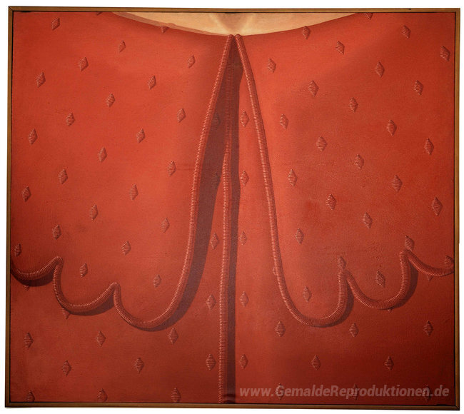 Wir bieten Ihnen eine handgefertigte Reproduktion auf Leinwand des berühmten Kunstwerks 'Rotes Kleid Kragen' von Domenico Gnoli, aus dem Reproduktionsmuseum.
