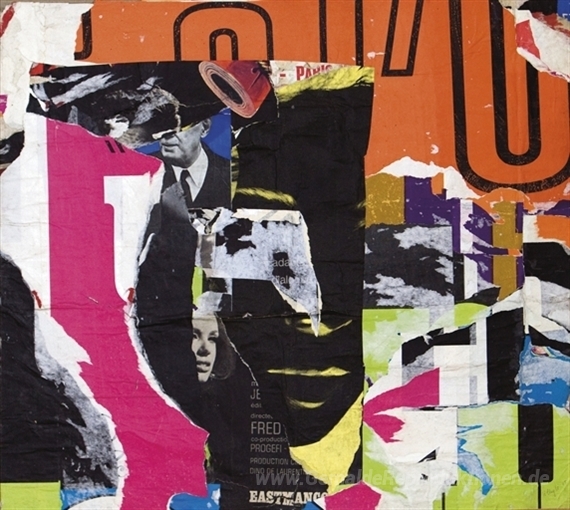 Wir bieten Ihnen eine handgefertigte Reproduktion auf Leinwand des berühmten Kunstwerks 'Rue Jean Paris - Sebasto' von Jacques Villeglé, aus dem Reproduktionsmuseum.
