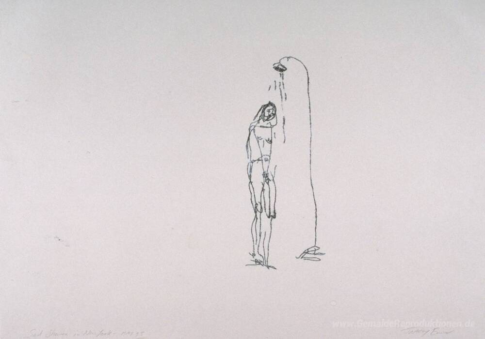Wir bieten Ihnen eine handgefertigte Reproduktion auf Leinwand des berühmten Kunstwerks 'Sad Dusche in New York' von Tracey Emin, aus dem Reproduktionsmuseum.