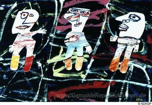 Wir bieten Ihnen eine handgefertigte Reproduktion auf Leinwand des berühmten Kunstwerks 'Scenic triplex' von Jean Dubuffet, aus dem Reproduktionsmuseum.