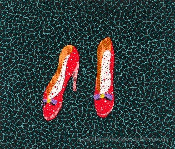Wir bieten Ihnen eine handgefertigte Reproduktion auf Leinwand des berühmten Kunstwerks 'Schuhe' von Yayoi Kusama, aus dem Reproduktionsmuseum.