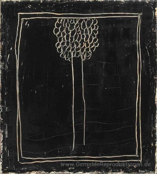 Wir bieten Ihnen eine handgefertigte Reproduktion auf Leinwand des berühmten Kunstwerks 'Schwarz Cypress' von Joan Hernandez Pijuan, aus dem Reproduktionsmuseum.