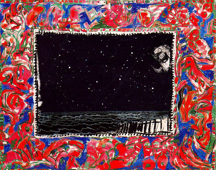 Wir bieten Ihnen eine handgefertigte Reproduktion auf Leinwand des berühmten Kunstwerks 'Schwarzes Meer' von Pierre Alechinsky, aus dem Reproduktionsmuseum.