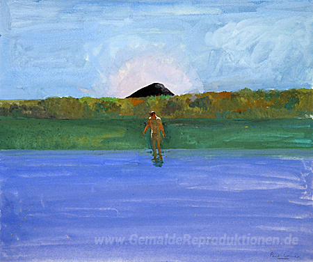 Wir bieten Ihnen eine handgefertigte Reproduktion auf Leinwand des berühmten Kunstwerks 'See, Nude, Black Hill' von Paul Wonner, aus dem Reproduktionsmuseum.