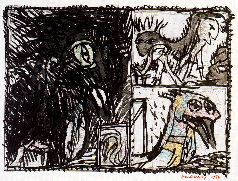 Wir bieten Ihnen eine handgefertigte Reproduktion auf Leinwand des berühmten Kunstwerks 'Seite der Universalatlas, VIII. Heiligen Geographie' von Pierre Alechinsky, aus dem Reproduktionsmuseum.