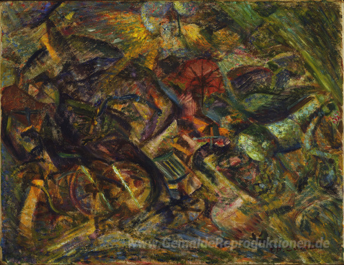 Willkommen in der inspirierenden Welt der Ölgemälde, wo Kunst und Emotionen aufeinandertreffen. Eines der herausragenden Werke, das unsere Kollektion bereichert, ist das faszinierende Gemälde Stöße eines Cab des renommierten Künstlers Carlo Carrà. Carrà, ein führender Vertreter des italienischen Futurismus, kombiniert in seinen Arbeiten dynamische Formen und lebendige Farben, um Bewegung und Energie zu vermitteln.