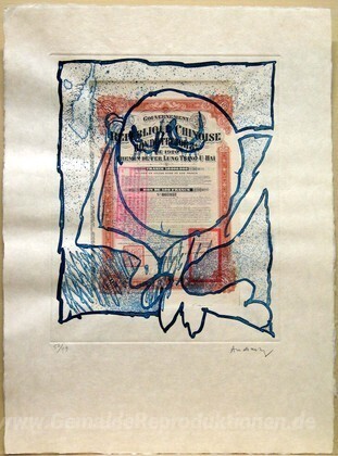 Wir bieten Ihnen eine handgefertigte Reproduktion auf Leinwand des berühmten Kunstwerks 'Tafel II aus dem Portfolio Krach' von Pierre Alechinsky, aus dem Reproduktionsmuseum.