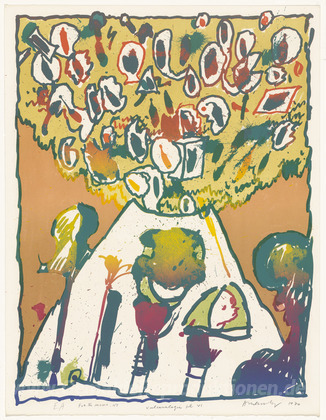 Wir bieten Ihnen eine handgefertigte Reproduktion auf Leinwand des berühmten Kunstwerks 'Tafel VI aus dem Portfolio Vulcanologies' von Pierre Alechinsky, aus dem Reproduktionsmuseum.